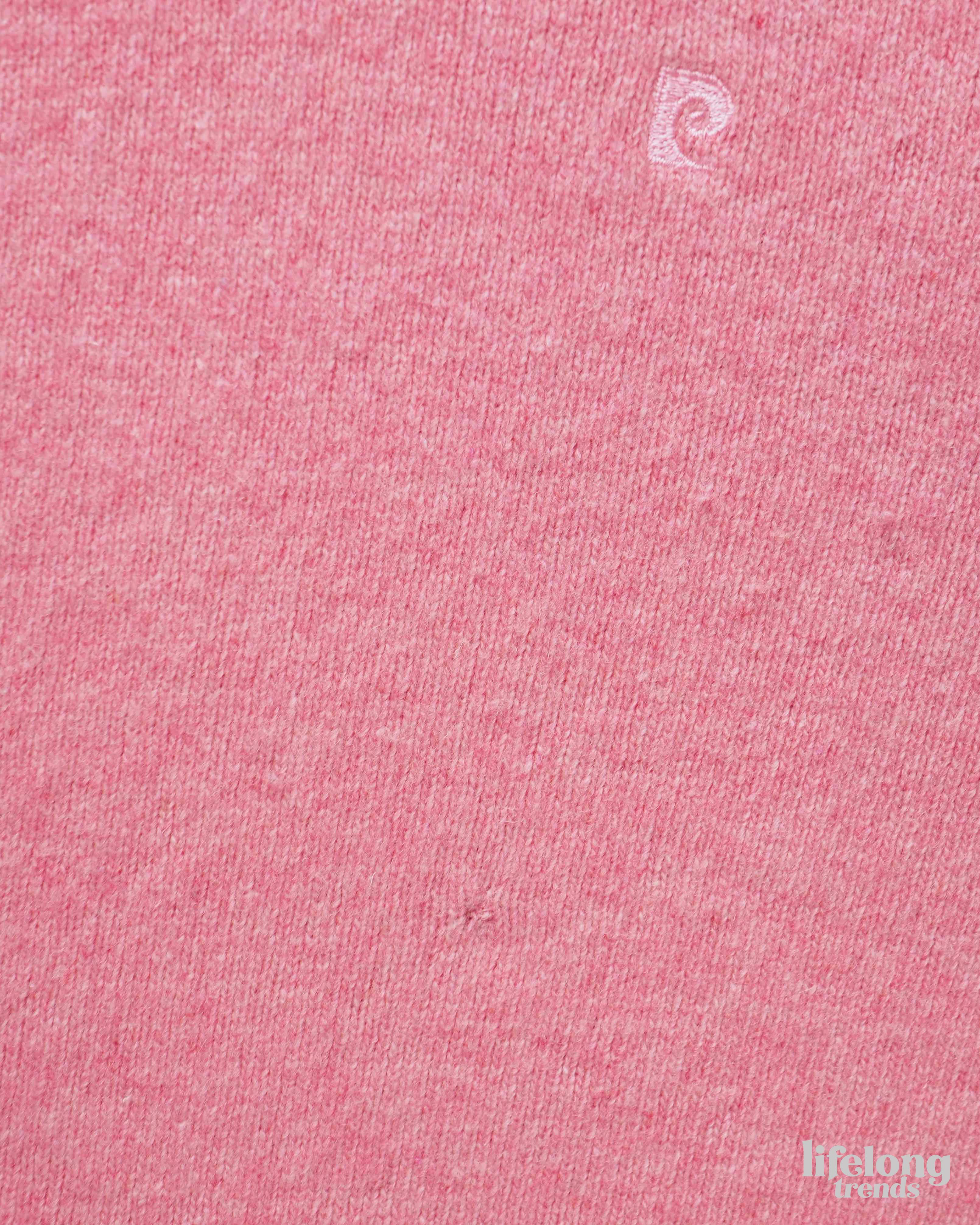Pierre Cardin pink sweater with embroidered logo. Woolen fabric.