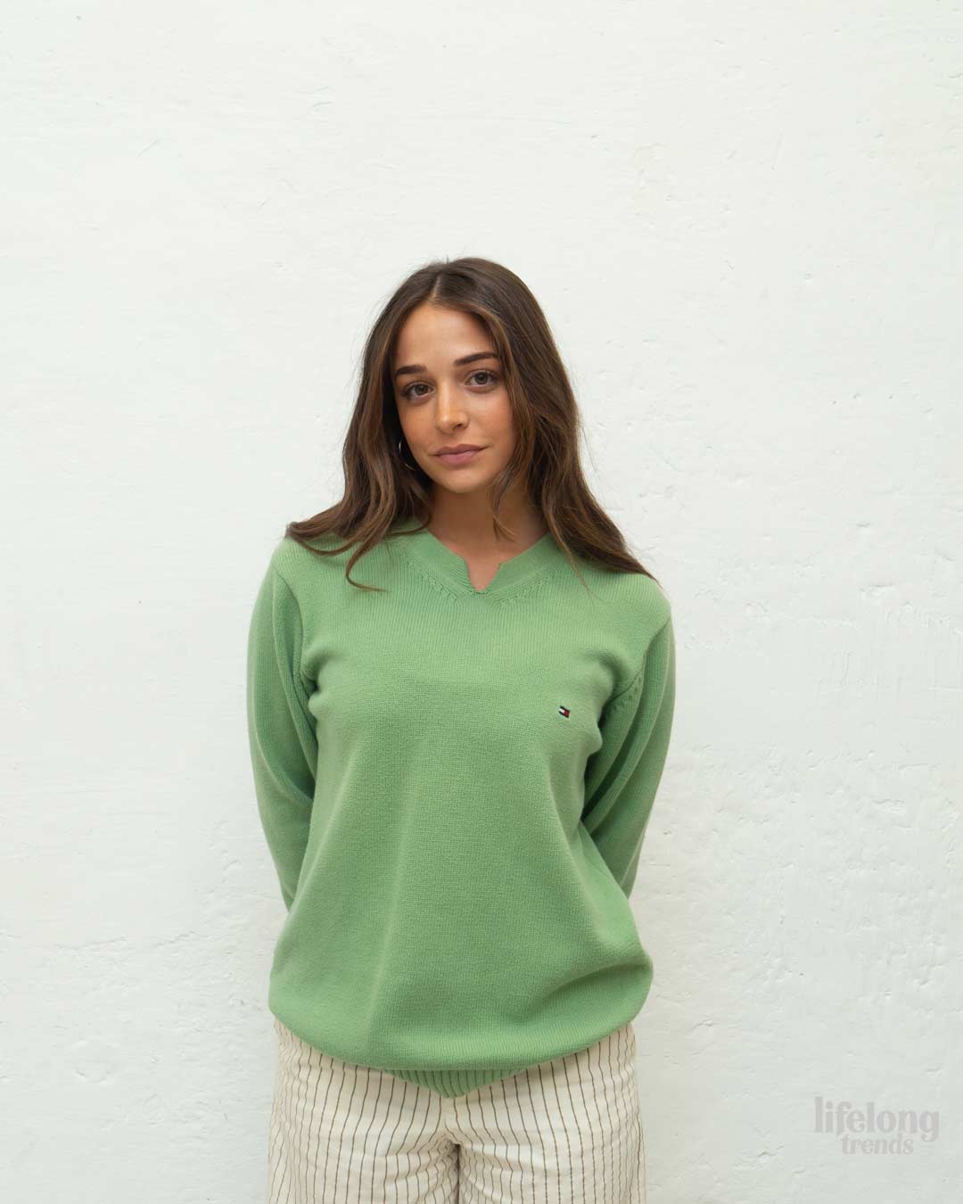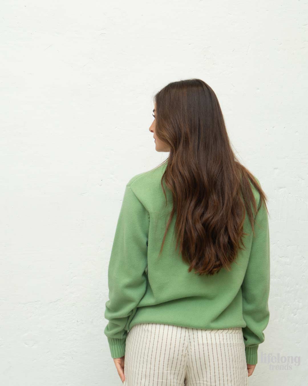 un jersey de buena calidad y cuidado, mejor de lo esperado, sinceramente lo recomiendo ya que es una manera de reciclar y reaprovechar bien prendas de gran calidad. Gracias LifeLong Trends.