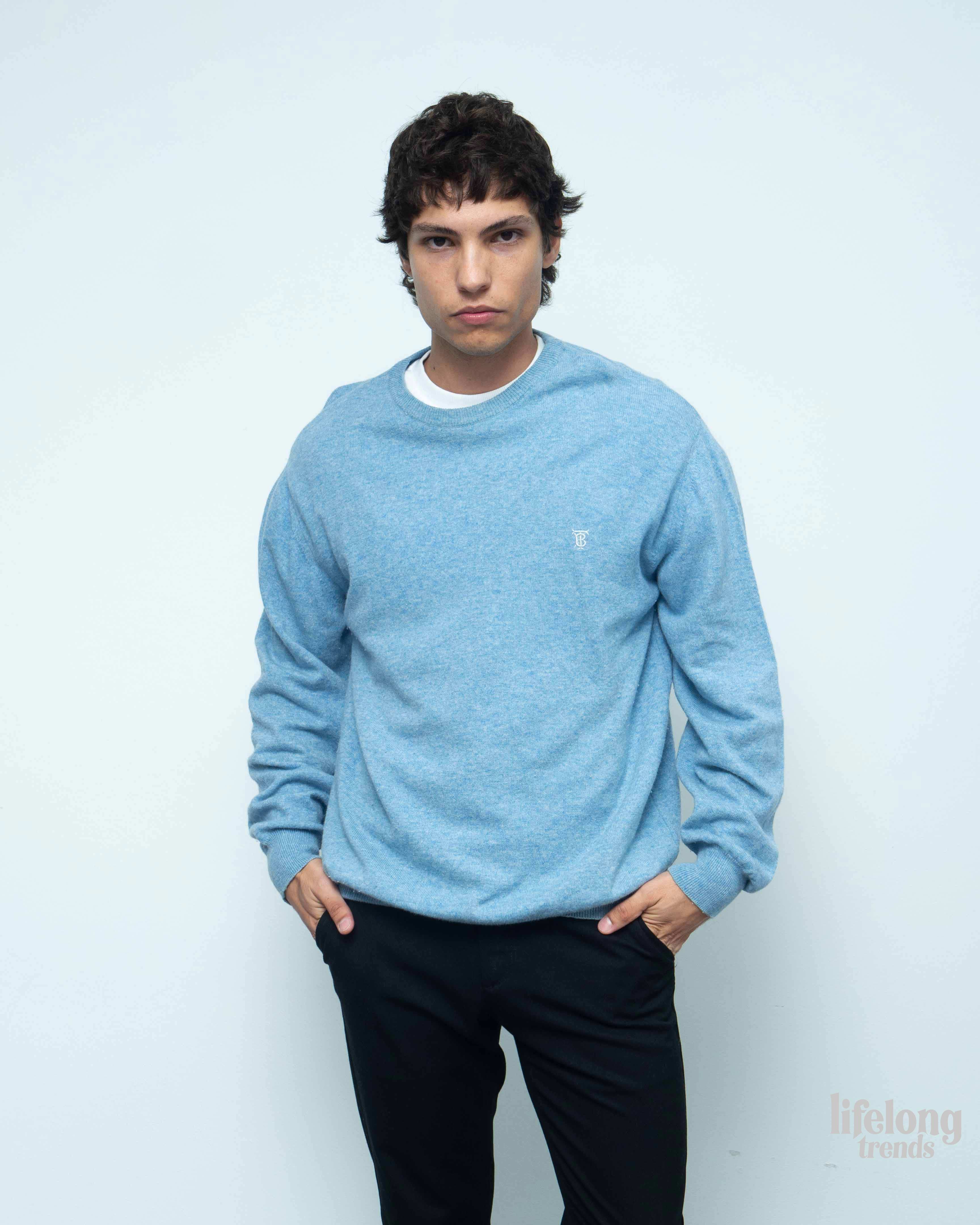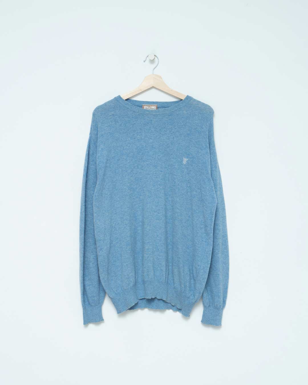 Jersey Thomas Burberry vintage en color azul, con el logo bordado en el pecho.