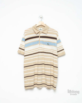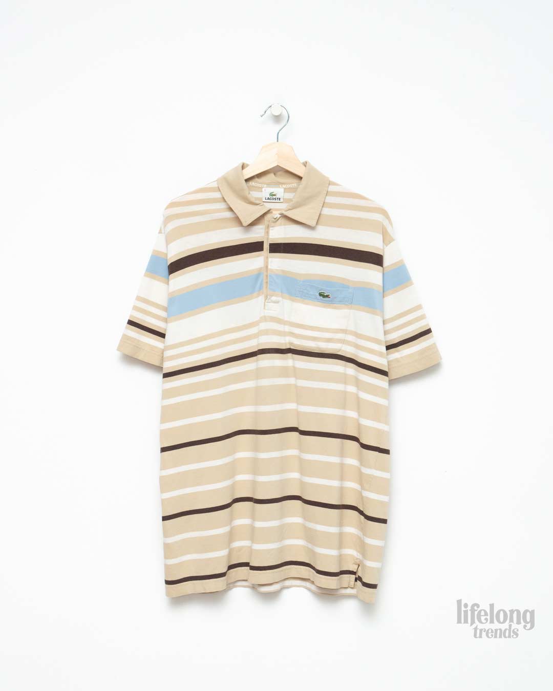 Polo Lacoste vintage en color beige y blanco, con el logo bordado en el pecho.