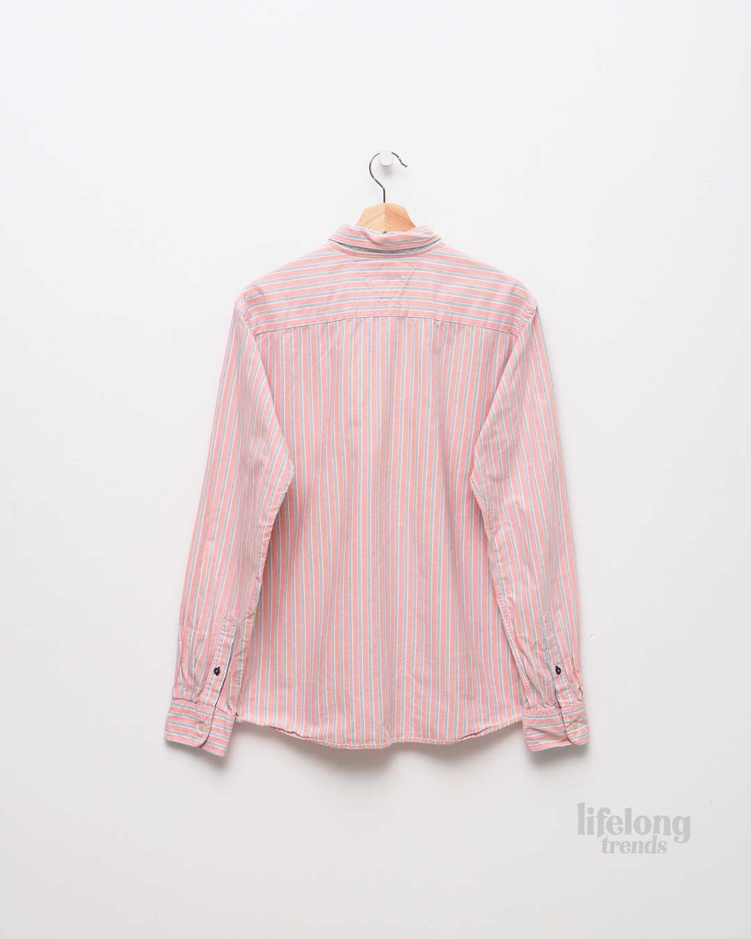 Camisa de rayas Tommy Hilfiger vintage en color rosa y blanco, con el logo bordado en el pecho.