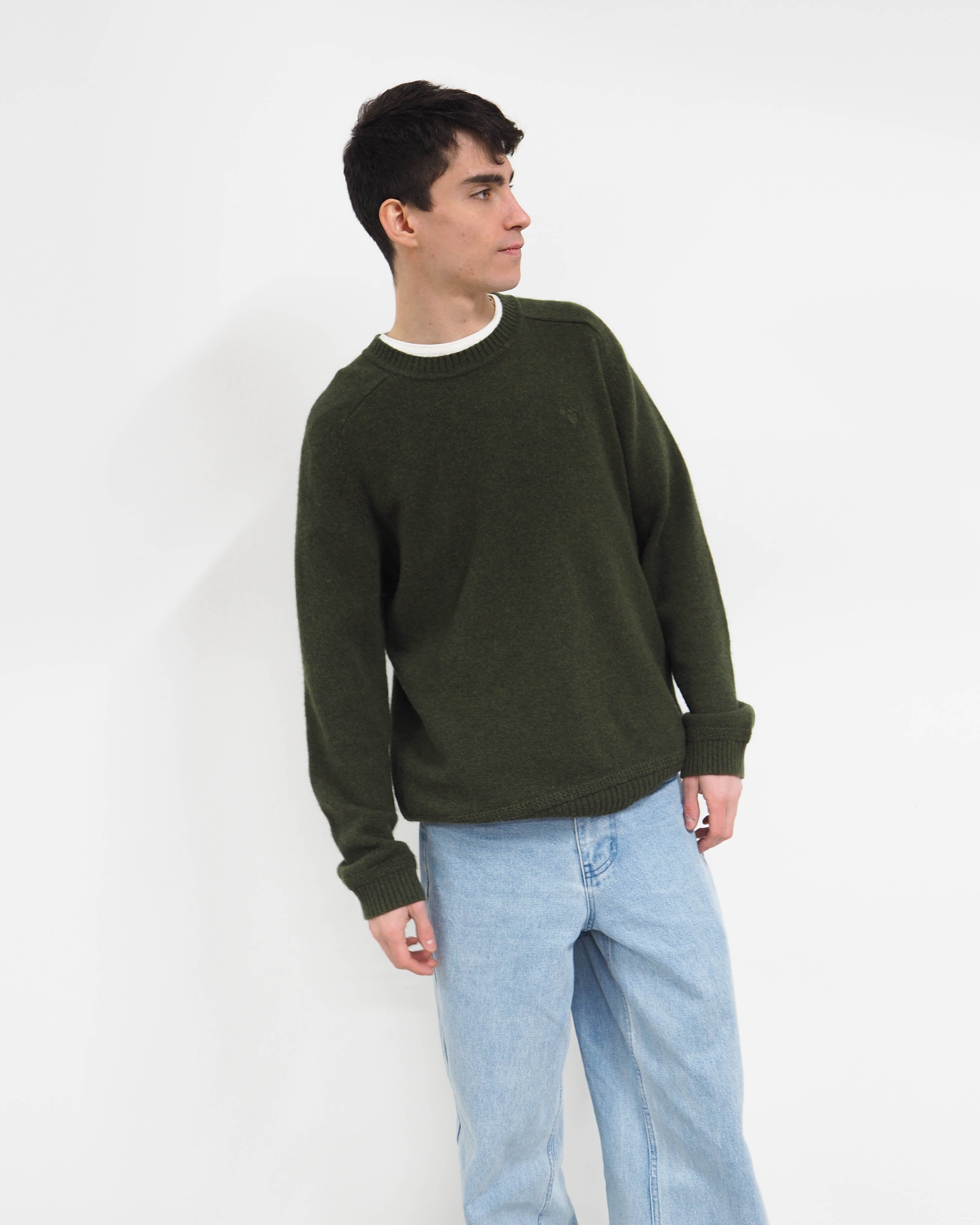 Jersey Gant vintage en verde caqui, con el logo bordado en el pecho.