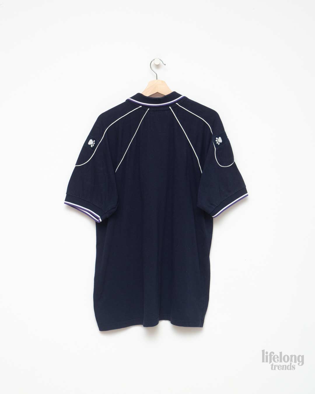 Polo del equipo de futbol Real Madrid de Kelme vintage en color azul marino, con el logo y escudo bordado en el pecho.