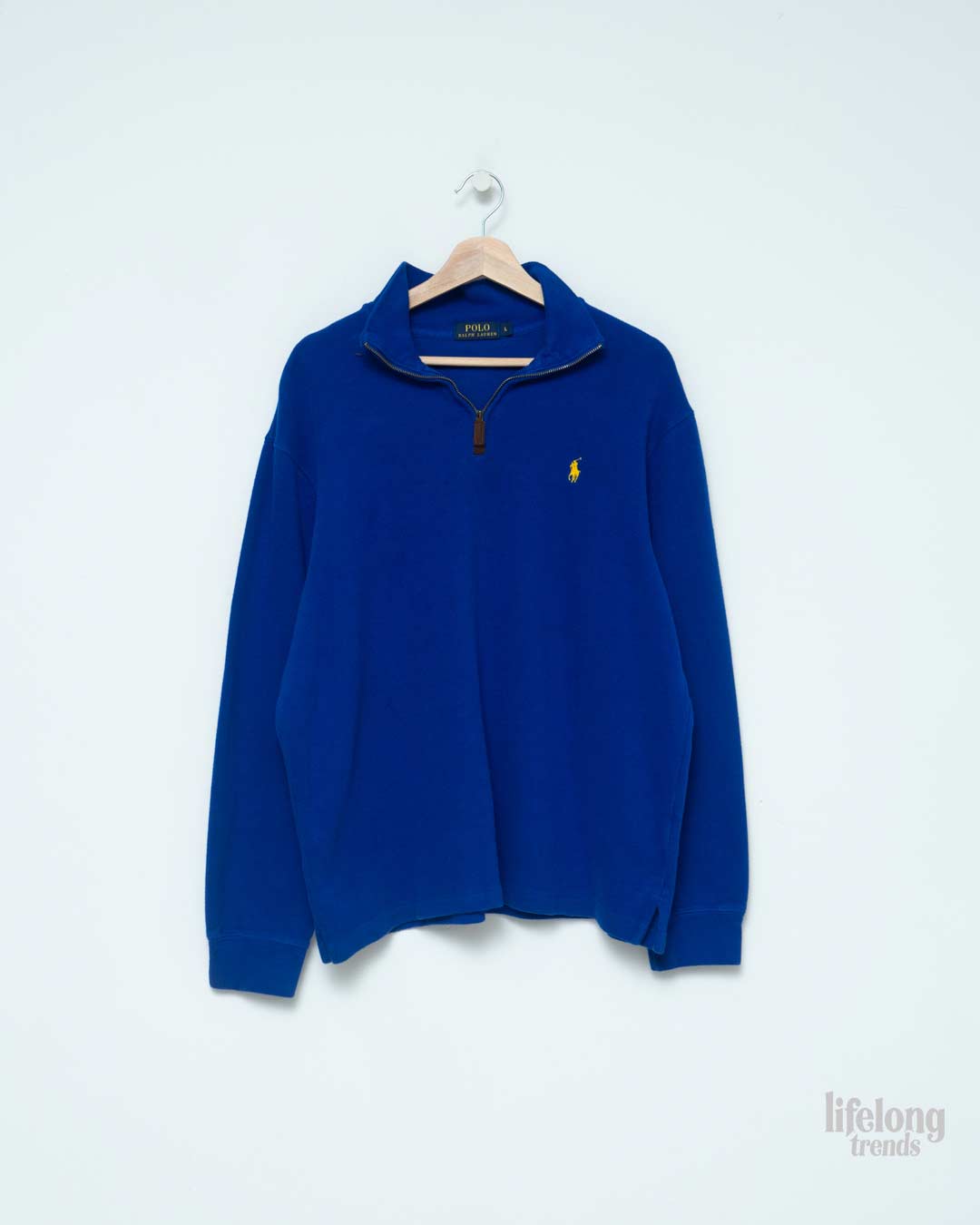 Jersey 1/4 de cremallera Ralph Lauren vintage en color azul eléctrico, con el logo bordado en el pecho.