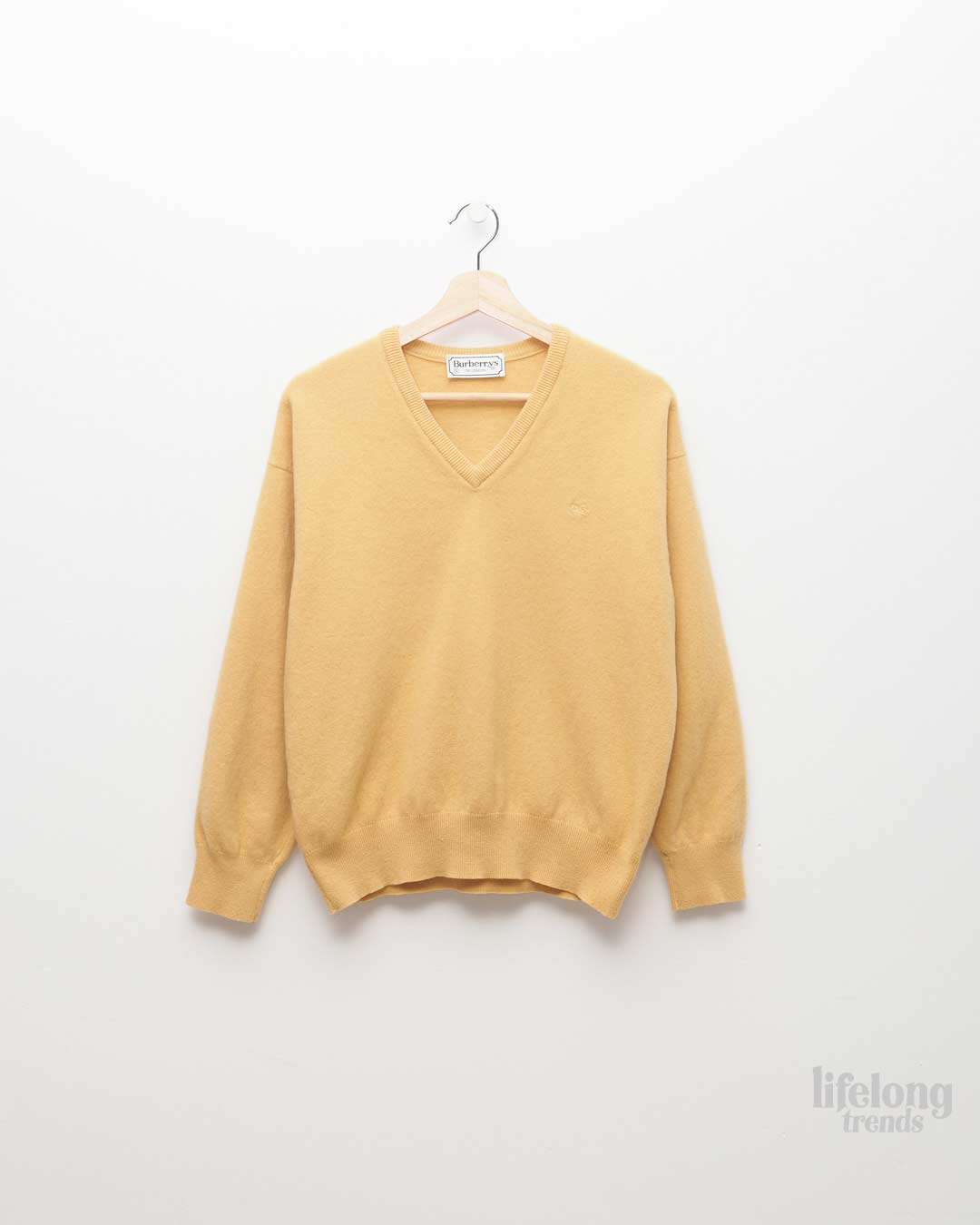 Jersey de pico Burberry vintage en color amarillo claro, con el logo bordado en el pecho.