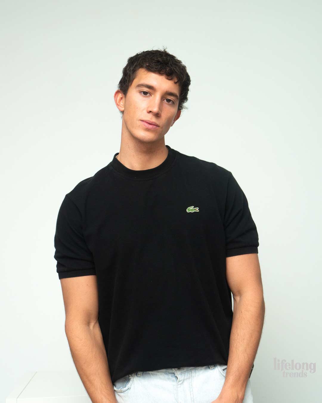 Camiseta Lacoste vintage en color negro, con el logo bordado en el pecho.