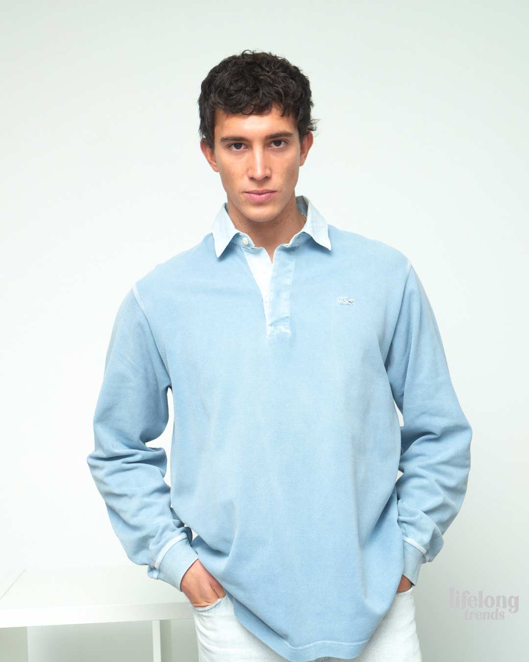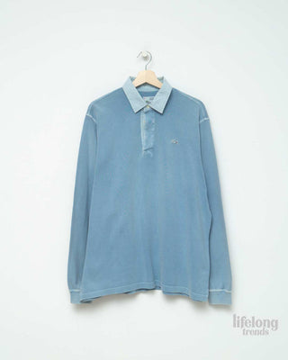 Polo de manga larga Lacoste vintage en color azul, con el logo bordado en el pecho en color azul claro
