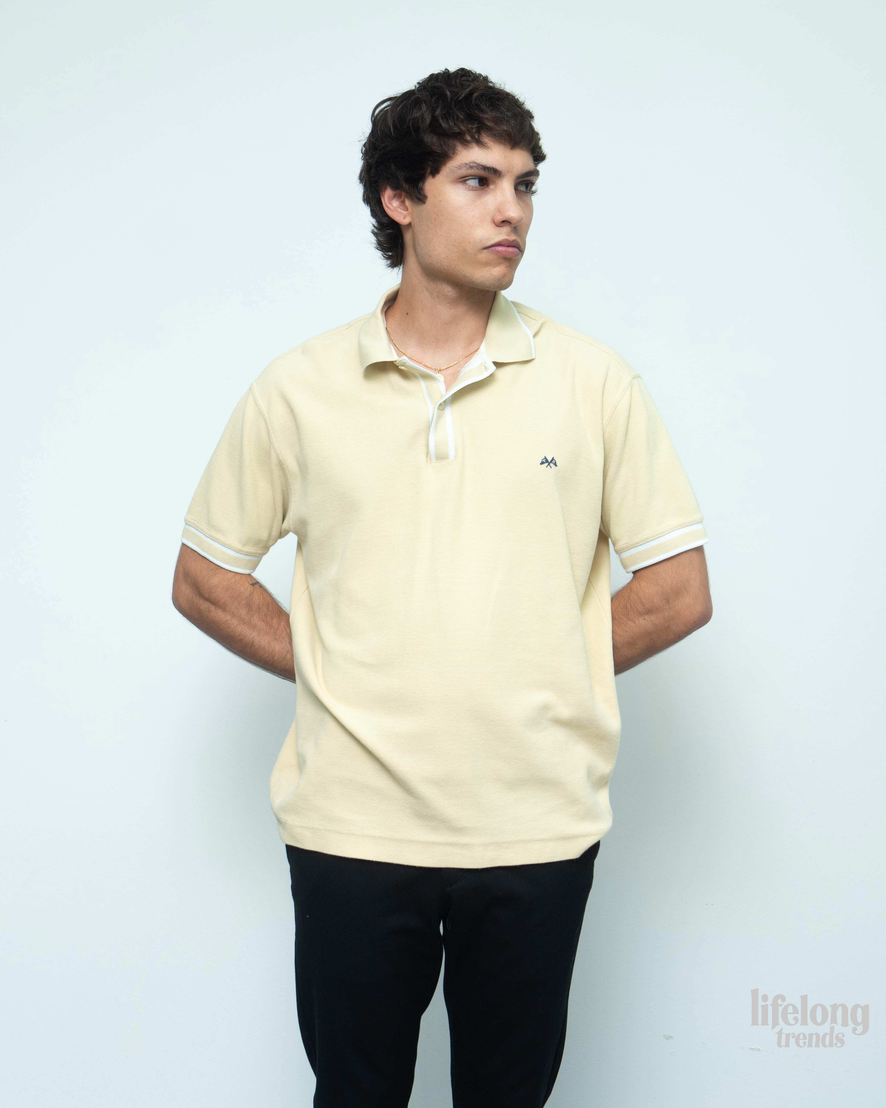 Polo Thomas Burberry vintage en color crema, con el logo bordado en el pecho.