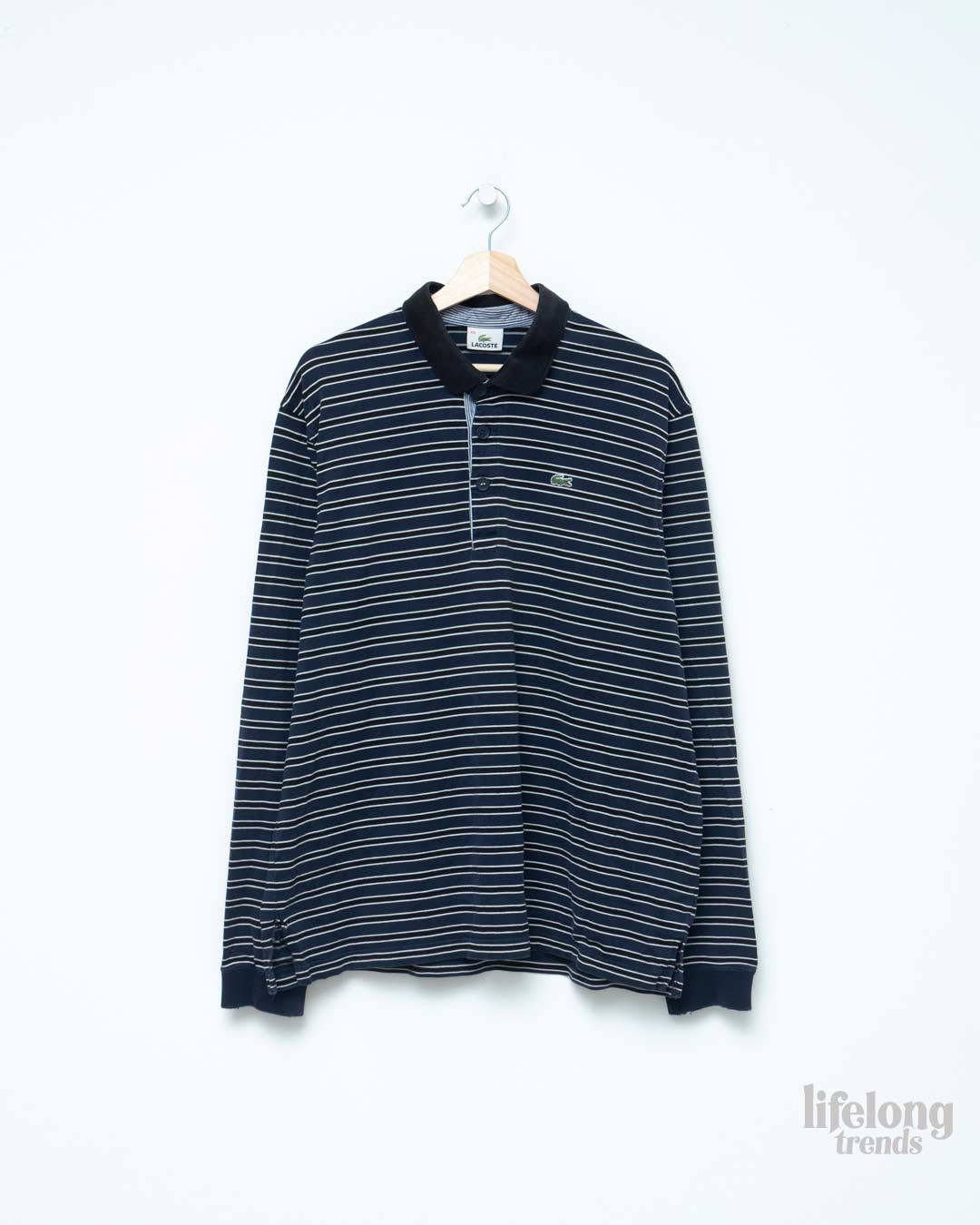 Polo de manga larga Lacoste vintage en color negro, con el logo bordado en el pecho.