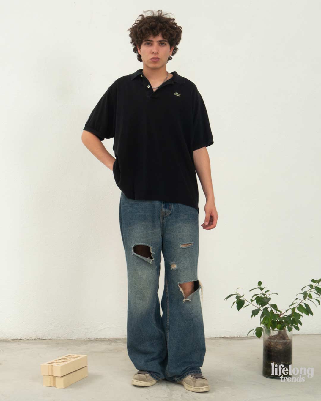 Polo Lacoste vintage en color negro, con el logo bordado en el pecho.