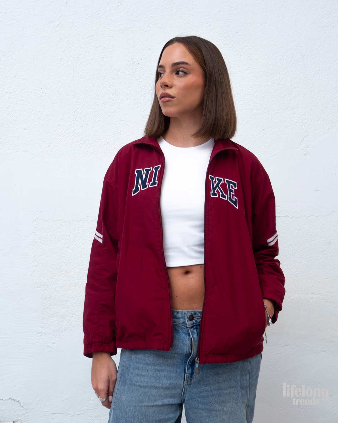 Chaqueta Nike vintage en color burdeos, con el logo bordado en el pecho.
