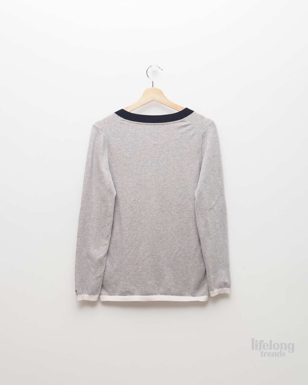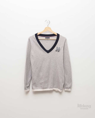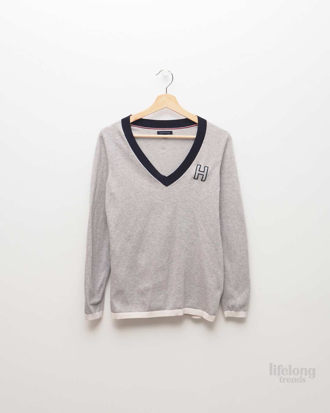 Jersey de pico Tommy Hilfiger vintage en color gris, con el logo bordado en el pecho.
