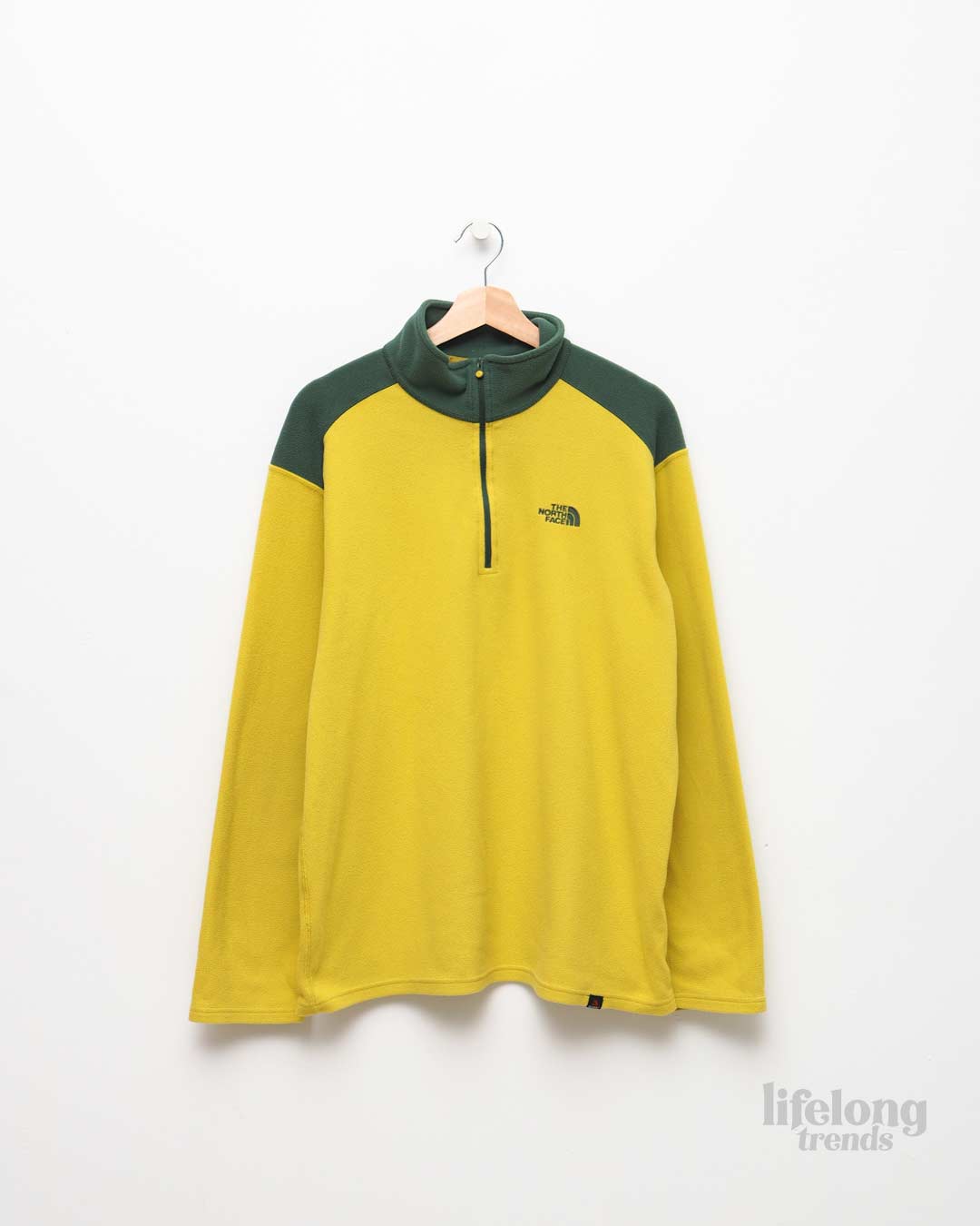 Forro polar The North Face vintage en color amarillo y verde, con el logo bordado en el pecho.