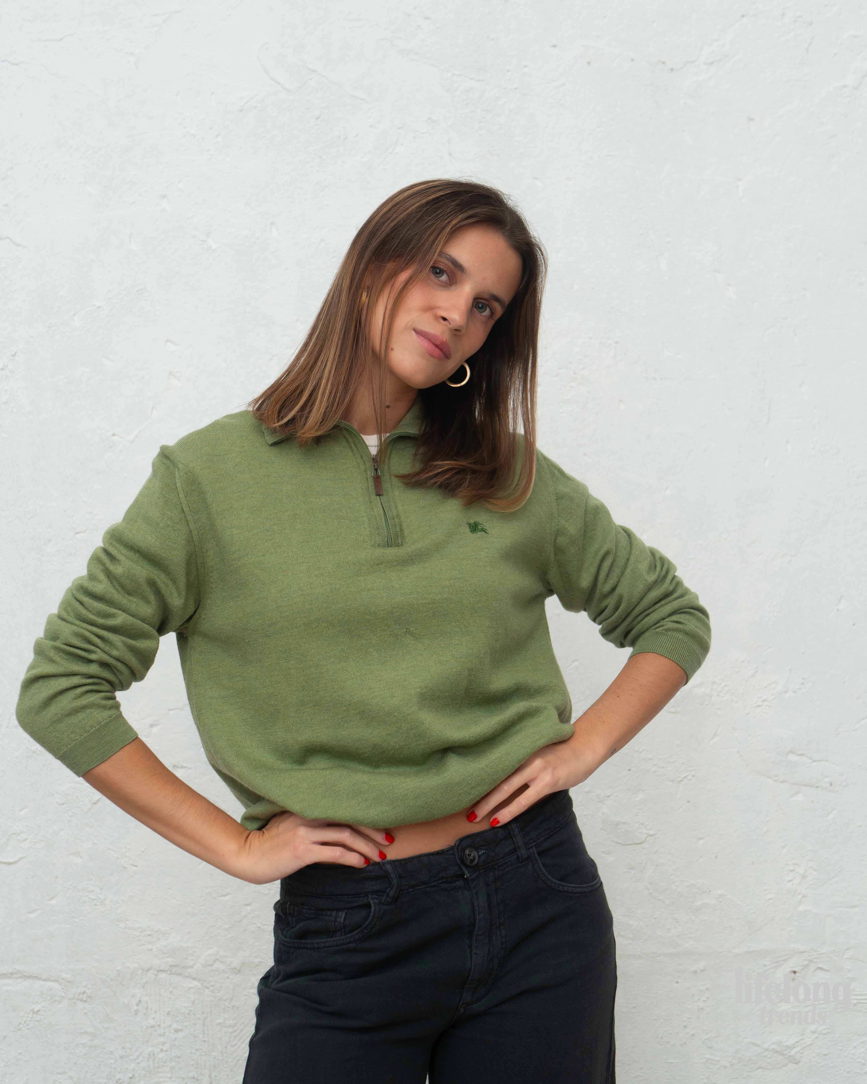 Jersey Burberry vintage en color verde, con el logo bordado en el pecho.