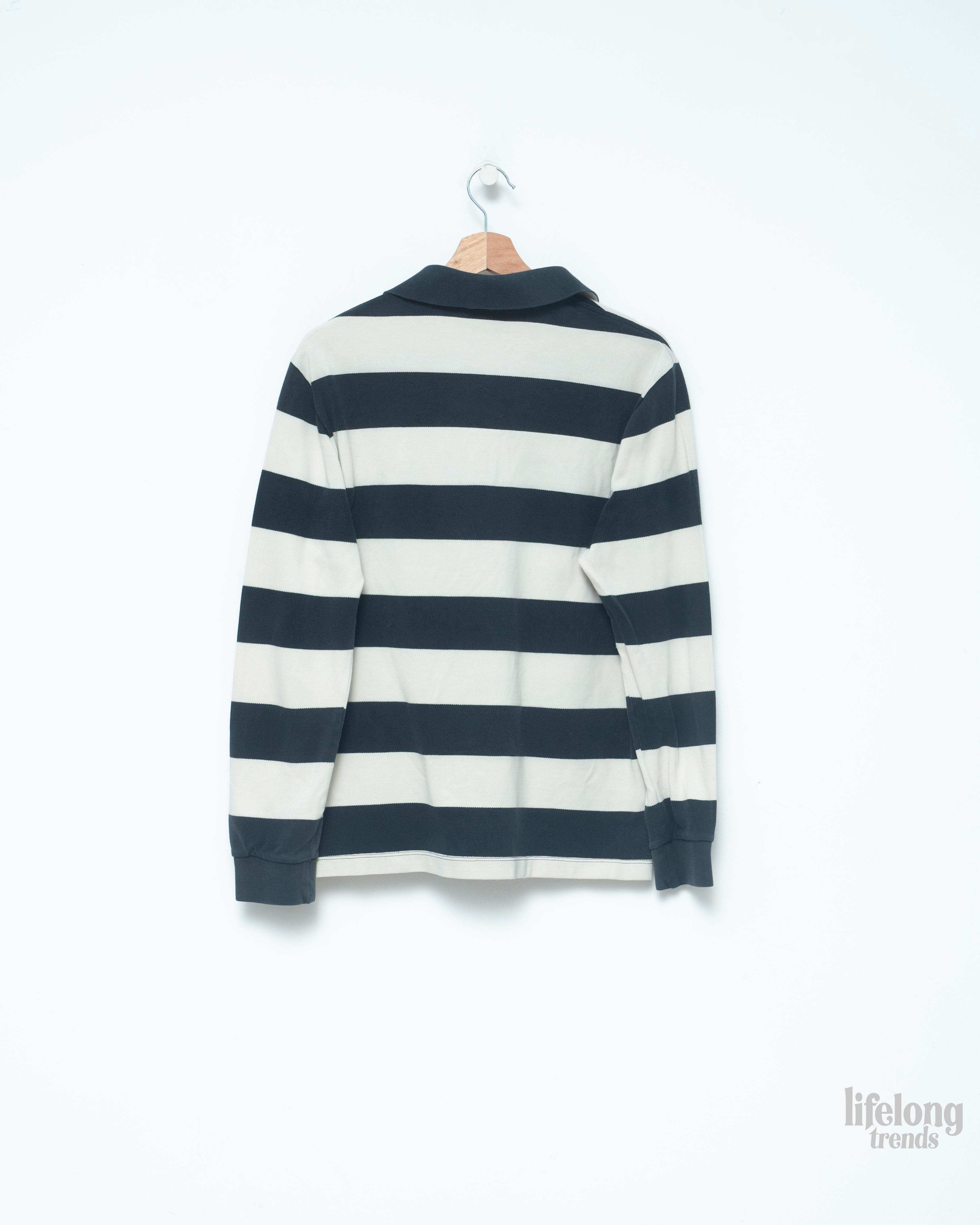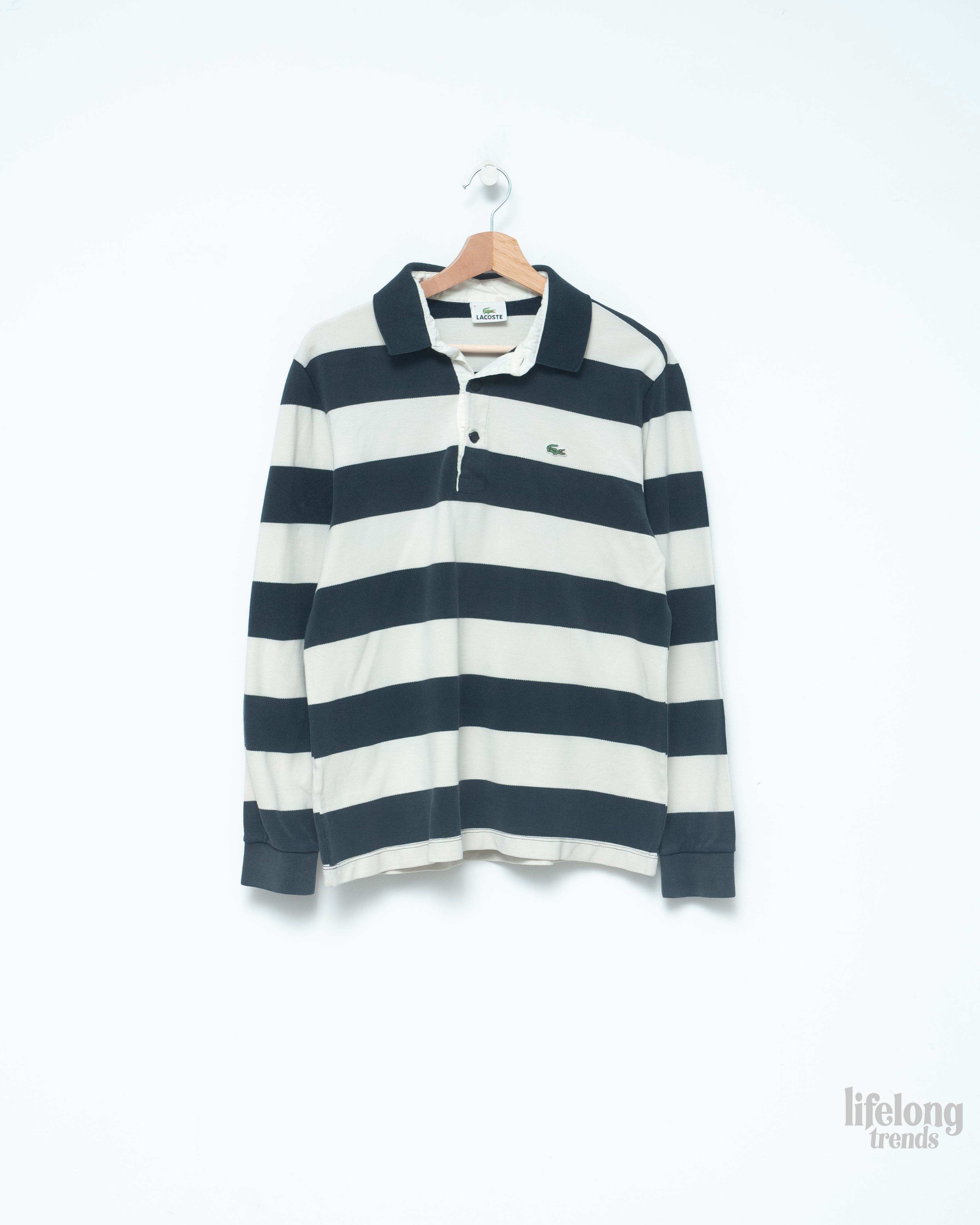Polo de manga larga de Lacoste vintage en color blanco y negro, con el logo bordado en el pecho.