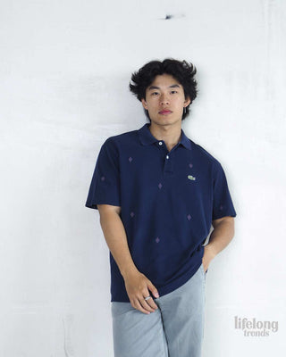 Polo Lacoste vintage en color azul marino, con el logo bordado en el pecho.